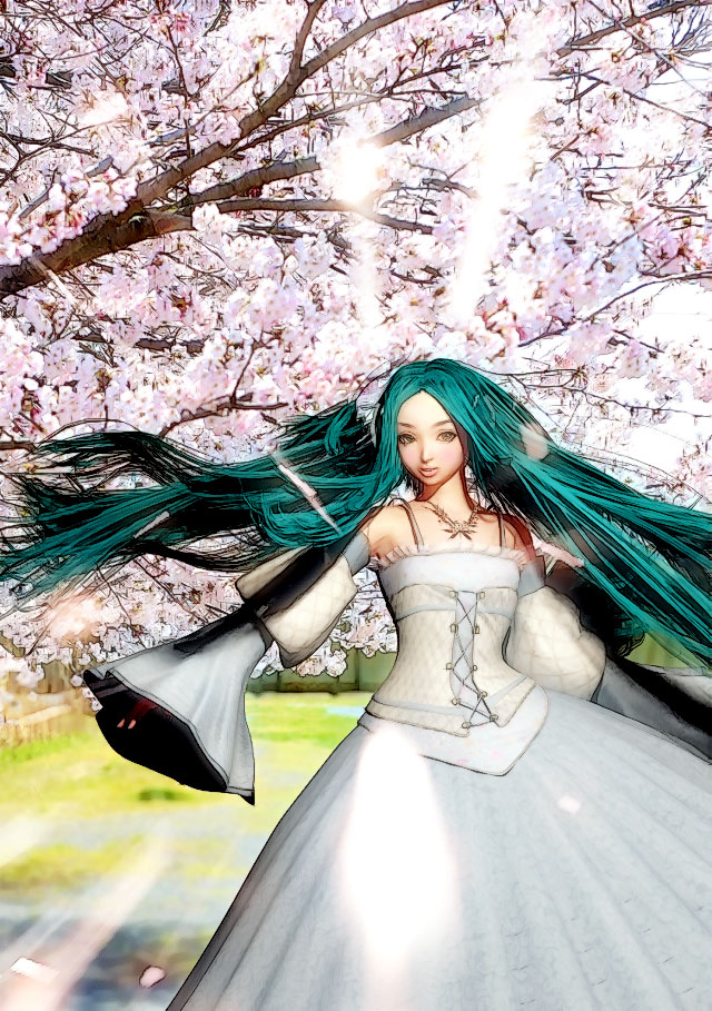 桜の季節ということで、桜をバックにミクさん画像を一枚作ってみました(^^ゞ