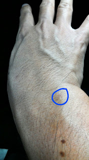 手を胃・胸付近に垂直(手のひらを添えて)にあてると「ビリビリした感覚」をガード出来る。