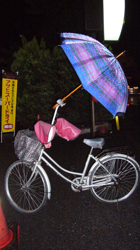 完全武装打ち合わせ終了後お腹がすいたので、ラーメンを食べに行って来ました。ラーメンを食べて帰ろうすると、凄い自転車が置いてありました。あまりにも凄かったので、思わず写真を撮ってみました 笑この自転車だったら雨が降っても問題なさそうでしょ?