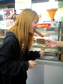 うなぎフランクを食べるキヨです
