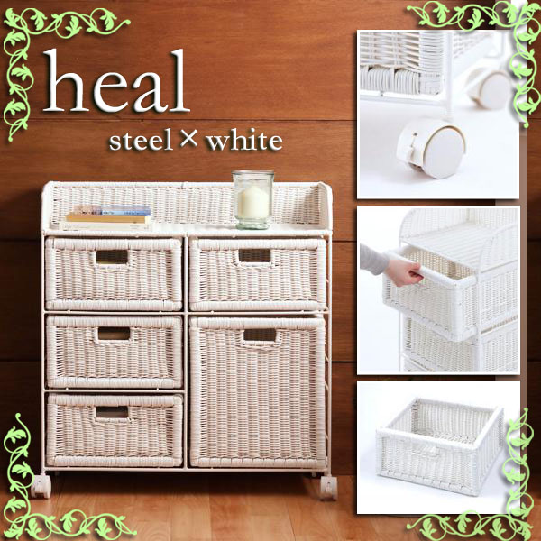 【送料無料】【C】キャスターつき白いチェストシリーズ【heal】ヒール f. 奥行31cmタイプ 幅75リビング収納 アジアン家具 カゴ 南国 バスケット【代引不可】