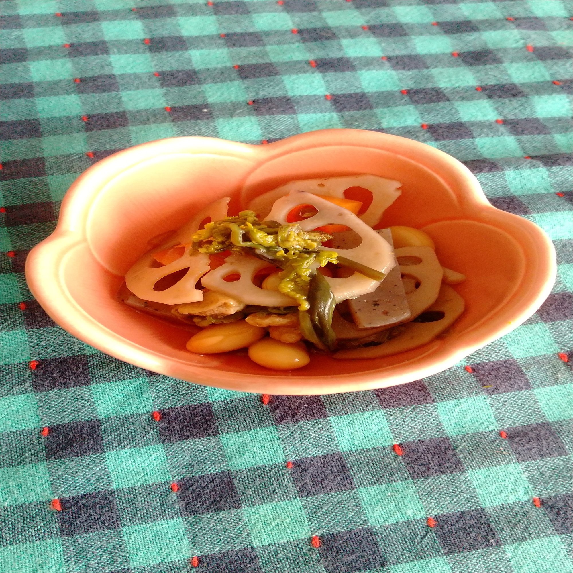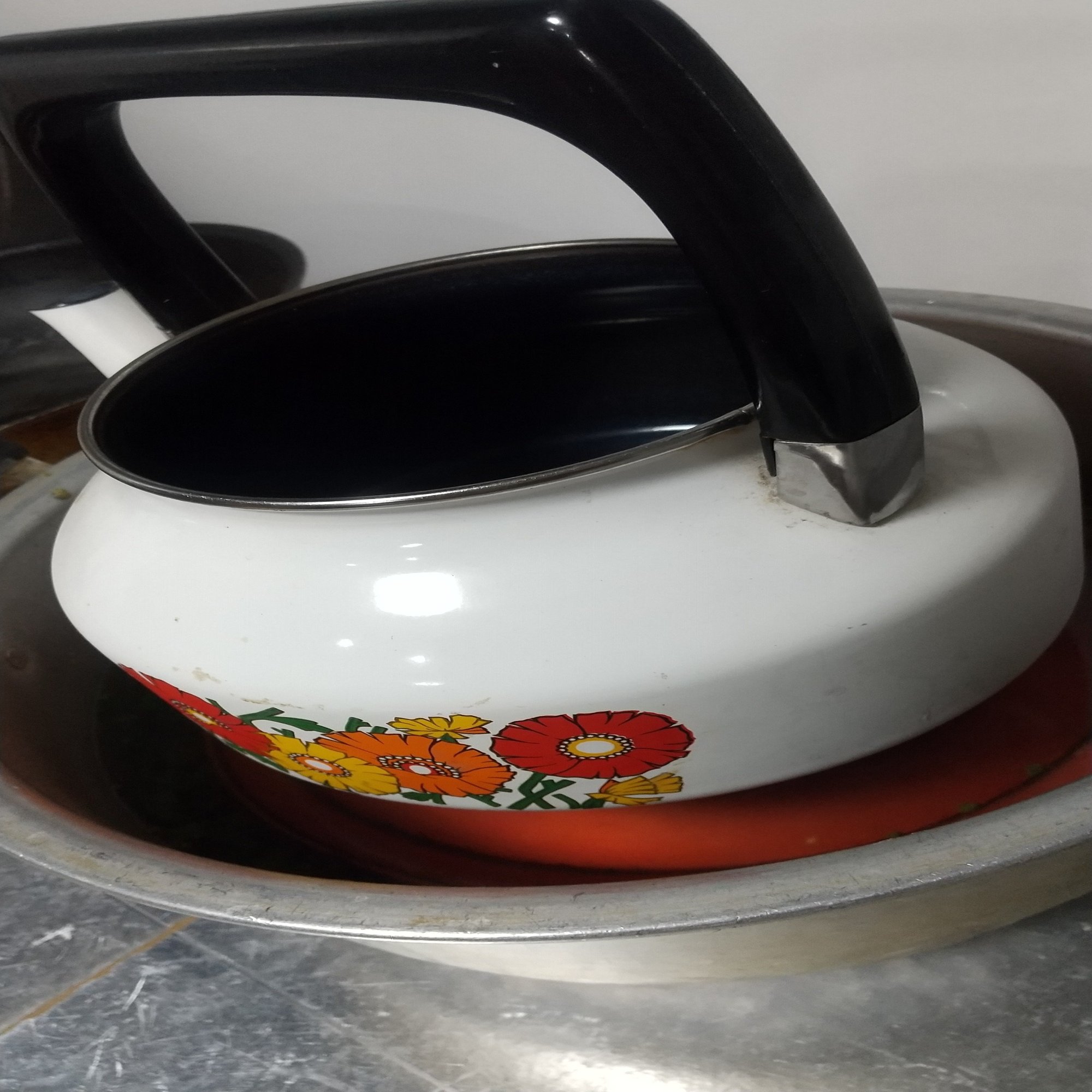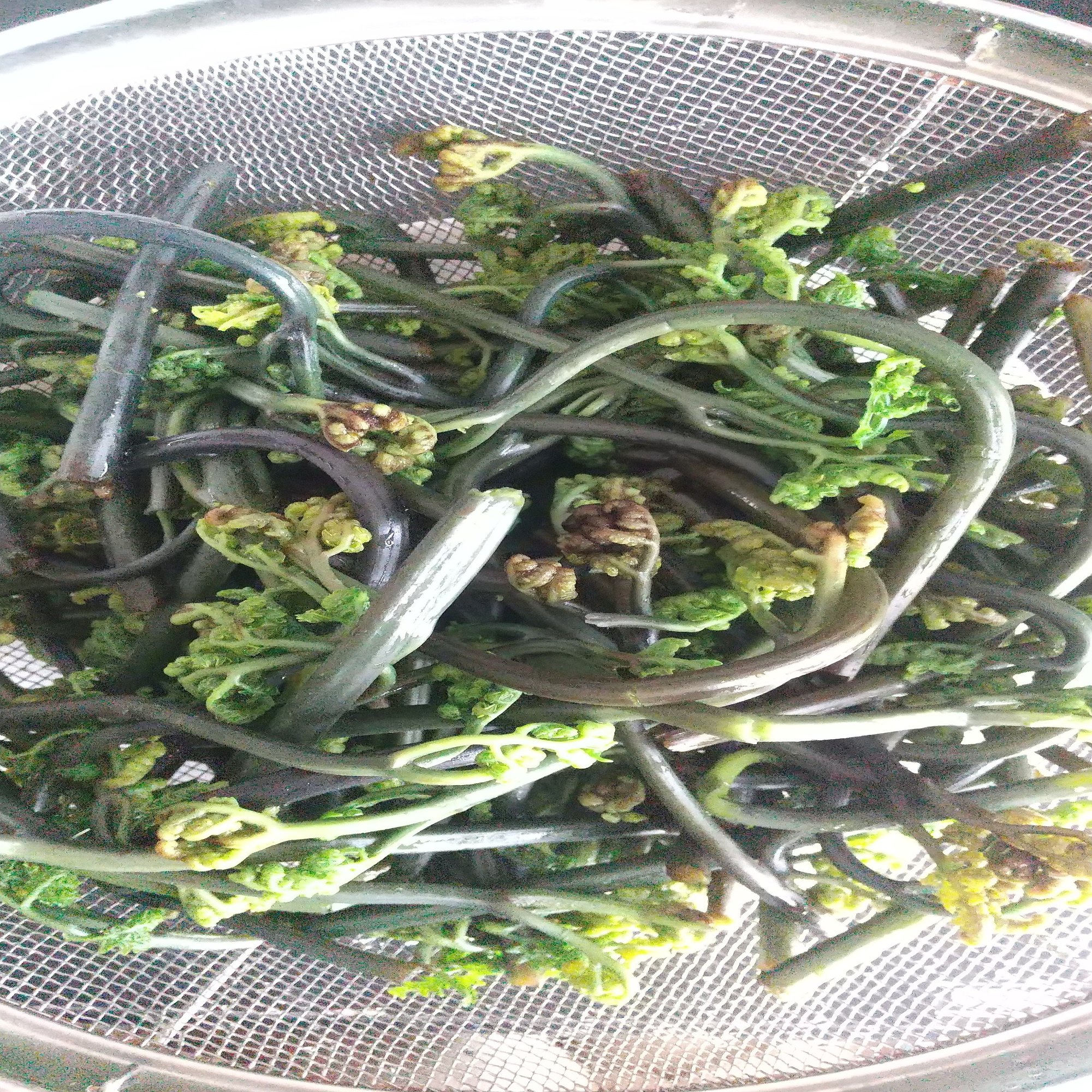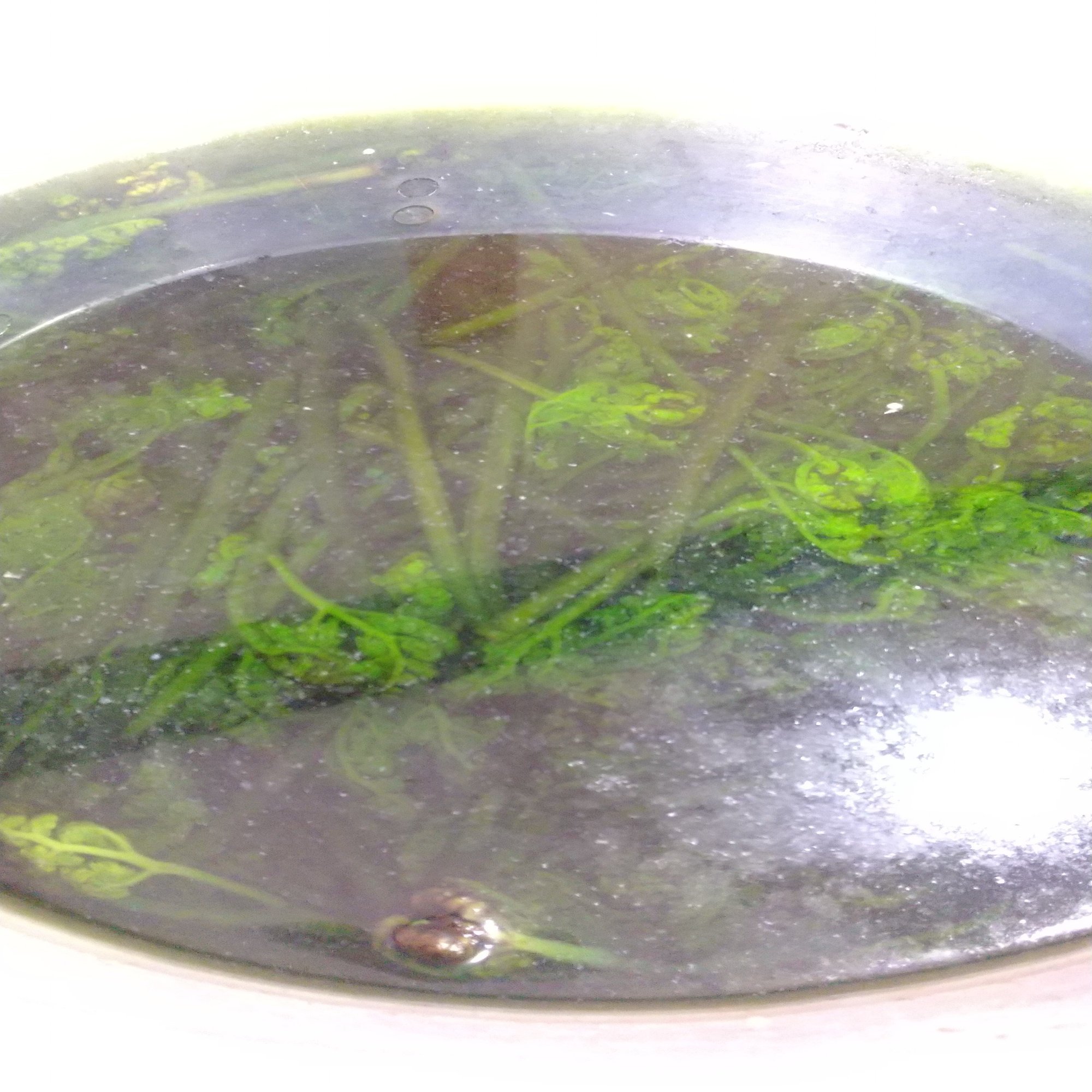 洗ったワラビに重曹を振りかけ熱湯を注ぐ。