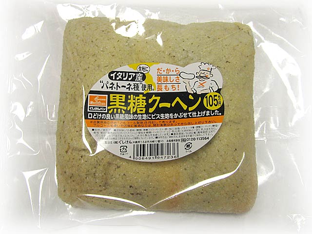 黒糖クーヘン黒糖クーヘン 袋には 生地にイタリア産“パネトーネ種”使用。 だ・か・ら美味しさ長持ち! 口どけの良い黒糖風味の生地にビス生地をかぶせて仕上げました。 と書かれてます。 袋開けると黒糖の甘い香りが~ 黒糖好きにはたまらないいい香り 味のほうも程よい黒糖風味で美味しい。 クーヘンという名前 何層も重なってるのがわかりますね。 メロンパンではないけど メロンパンの様な食感でいただけます。 製造者:(株)ぐしけん 所在地:沖縄県うるま市 沖縄瓦 琉球瓦 赤瓦 のことなら 島袋瓦工場