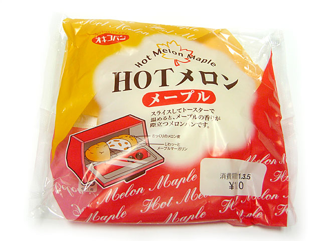 HOT メロン メープルHOT メロン メープル 今日の沖縄は肌寒いものの 気持ちの良い天気でした。 パッケージ見るだけ 食べるのが楽しみなメロンパンです。 期待通り~・・・・・・ ありゃ メープルマーガリンは!? う~~ん食べてみると 確かにメープル甘い香りと美味しさが どうやら中のパン生地に既に溶け込んでるようで イラストの様にはっきり見えるワケで無かったようです。 製造者:オキコ(株) 所在地:沖縄県西原町