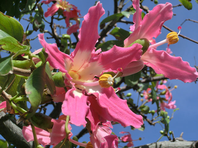 トックリキワタトックリキワタ 10月ころから1月末ころまで 場所によっては咲いてるのを見ることが出来ます。 場所によってはすっかり咲き終わってる木もありましたが まだまだ咲いてるところもあります。 3枚目はまた違う場所ですが 低い位置で咲いてたので 爽やかな花の香りも楽しめました。 パンヤ科/コリシア属