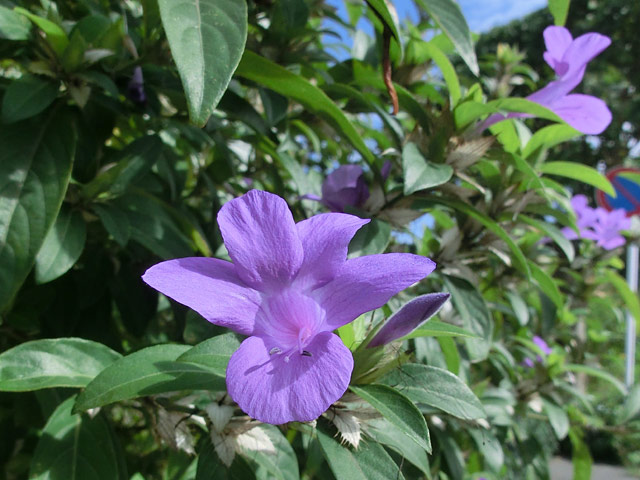 バルレリア・クリスタータバルレリア・クリスタータ 昨日は1日中雨 なかなか晴れの日が無い12月です、 写真は数少ない 晴れた時ものです。 夏の方花は多いけど この時期でもまだ花が咲いてます。 紫の花は綺麗ですが 茎の所に少しトゲがあるので チクチクします。 キツネノマゴ科バルレリア属