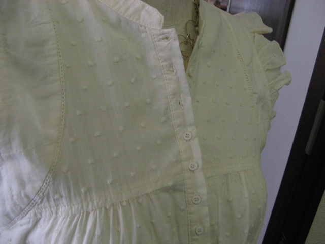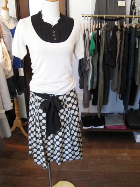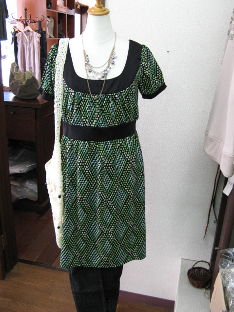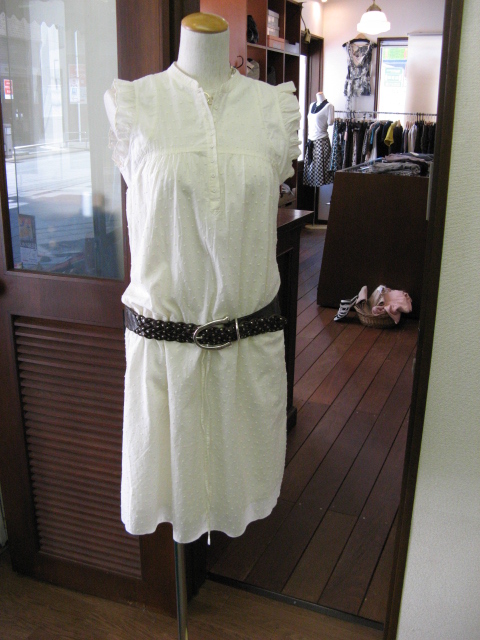 こちらは、袖のフリルと胸元がラブリーな クローズド(独)のワンピ。裏地もしっかり付いてるので、夏は一枚でOK!でも今はレイヤード(重ね着)がいいでしょ!