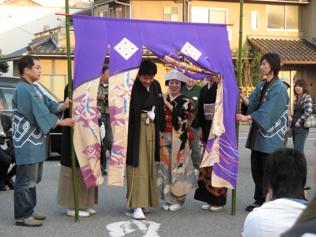 昨日から(4月29日~5月13日迄) 一本杉通りでは、「第4回花嫁のれん展」 が始まりました。回を重ねるごとに盛り上がりを見せ、マスコミの取材も増えてきました。そして 昨日は 記念イベントとして、花嫁道中・開幕式が行われました。