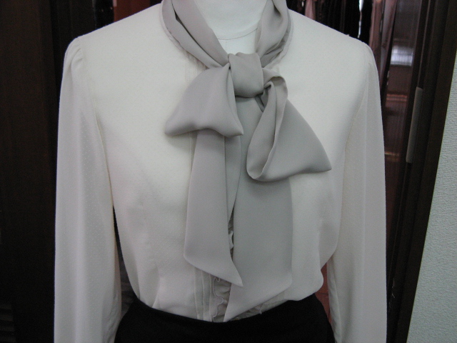 ①まず、トレンドのボウタイ、パフスリーブ・・