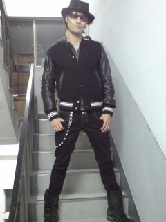 青木さんはスタジャンにスキニーで大人の不良スタイルがばっちり!!