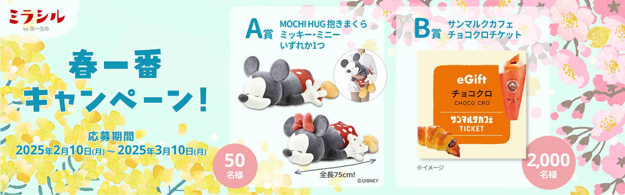 MOCHI HUG 抱きまくら ミッキー・ミニーいずれか1つを抽選で合計50名様に