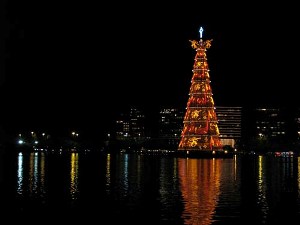今や世界で知られる観光名物になった、点灯式では花火が上がり、ツリーのライトが点灯。