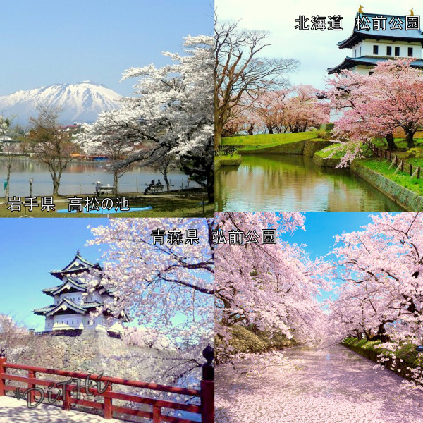 松前町に構える松前城を中心に、約250種類、約1万本の桜が植えられている、