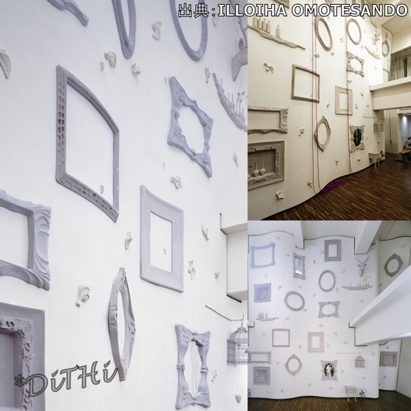 インテリア的な要素である、額や鏡、花瓶は鳥かごと言った、これまでの競技クライミングには無かった試みがここにはあるのです。