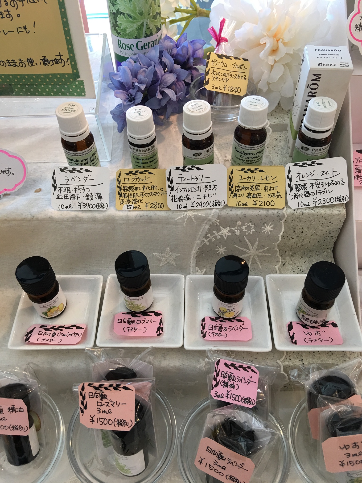 ・メディカルアロマ(プラナロム社ケモタイプ精油6種類)→ローズ、ティートゥリー、ローズマリーシネオール、ゼラニウムブルボン、ローズウッド、サイプレス