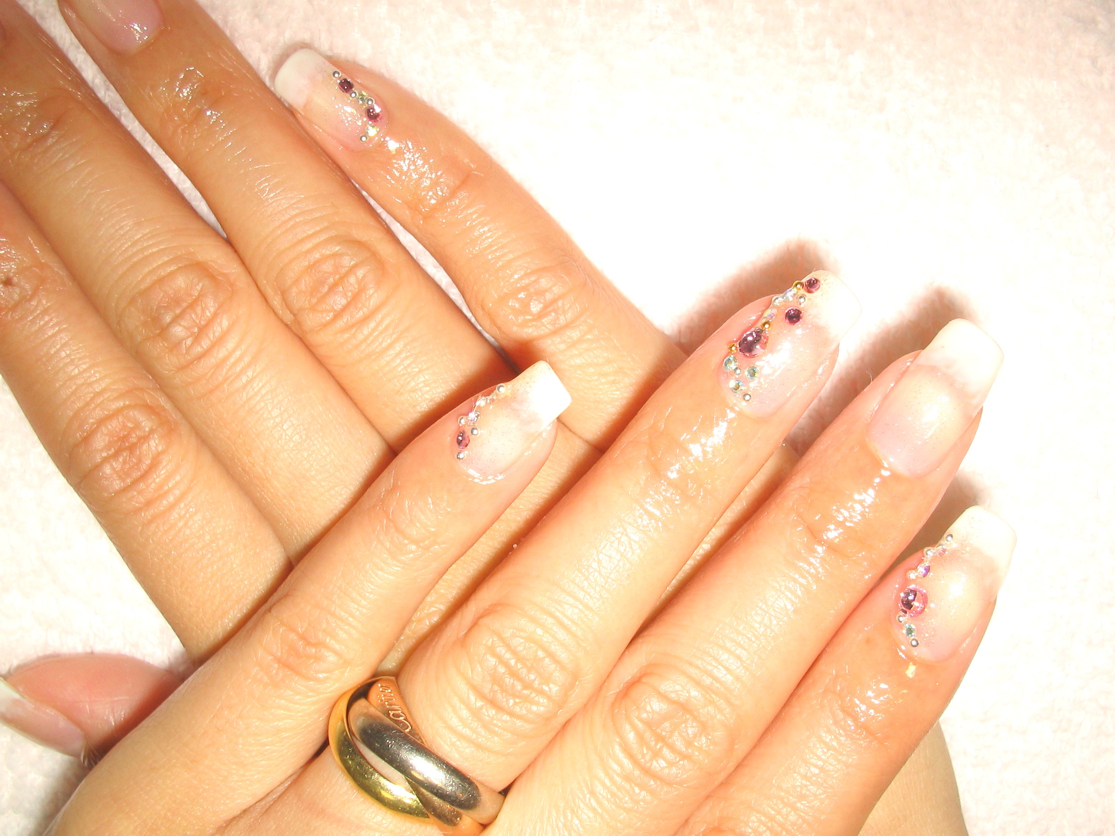 先端ブルーラメのグラデーションにしたので爪が伸びたら先端削って全然違和感なく付いていました☻