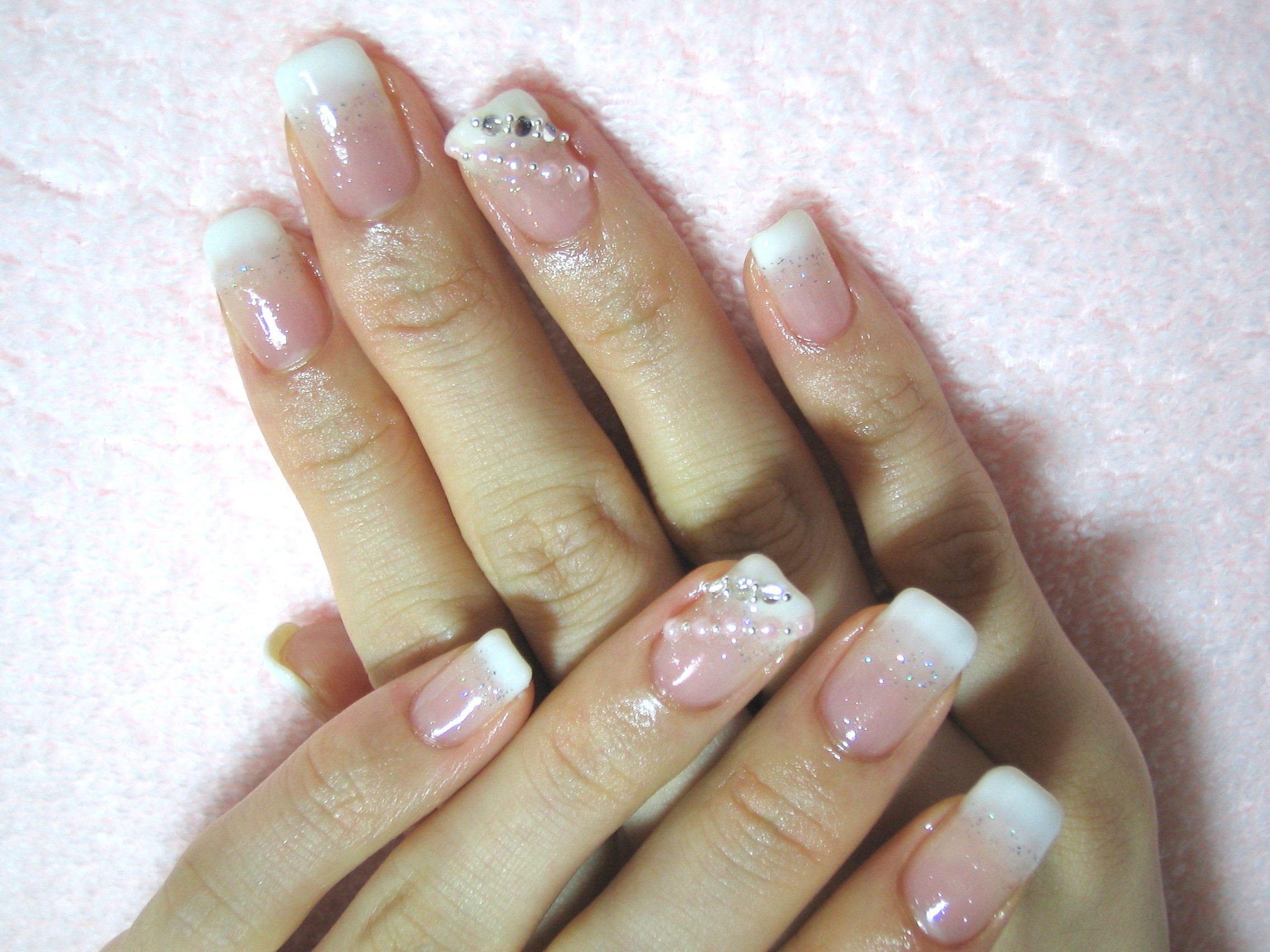 今回のネイルはベースにベビーピンクを使って先端にホワイトでグラデーションしました。