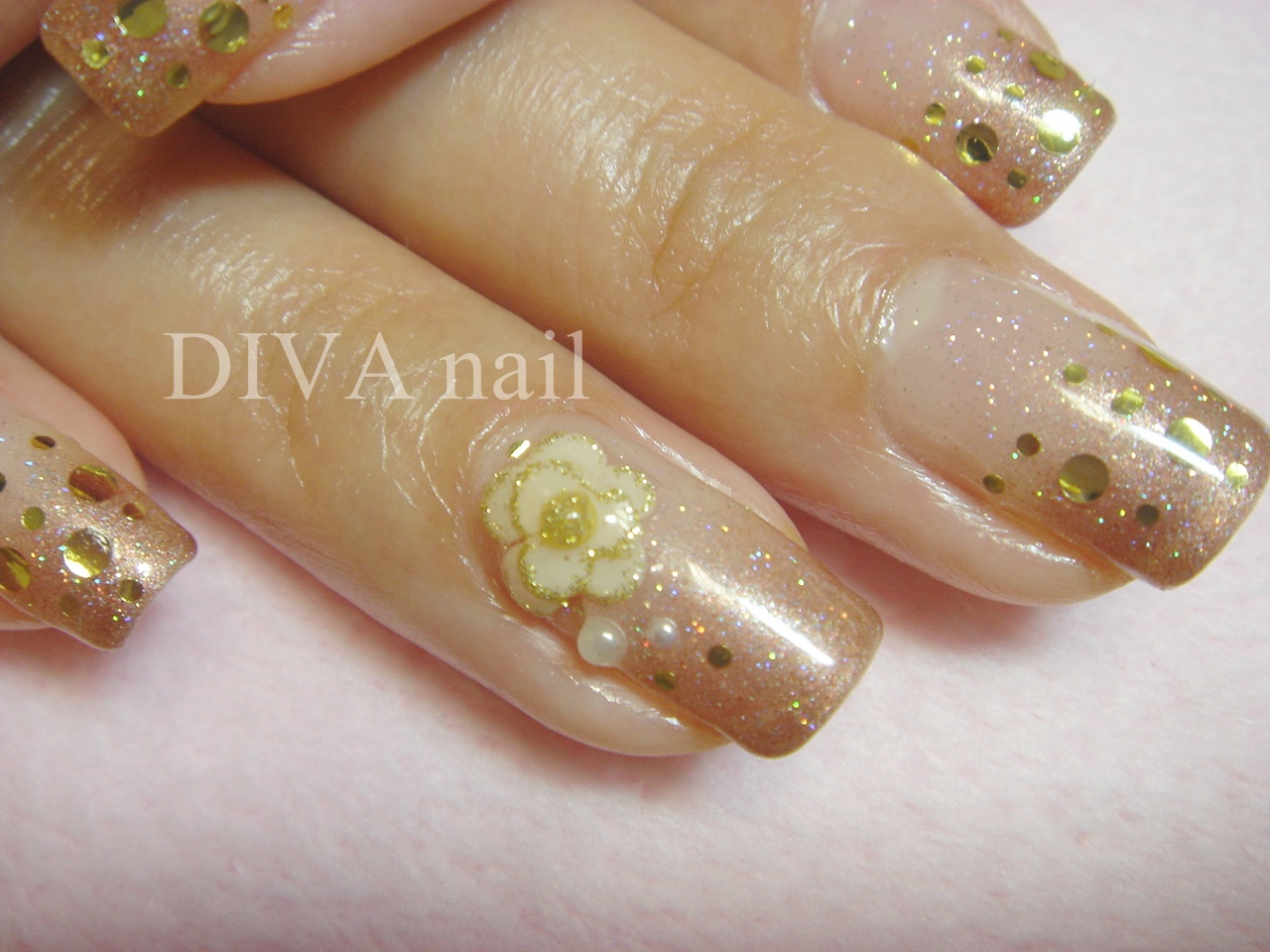 ネイルにもカメリア風の3Dをつけちゃいました