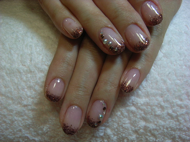 その上にブラウンのラメをのせて、ストーンの色もラメに合わせてブラウンをポイントに使いました