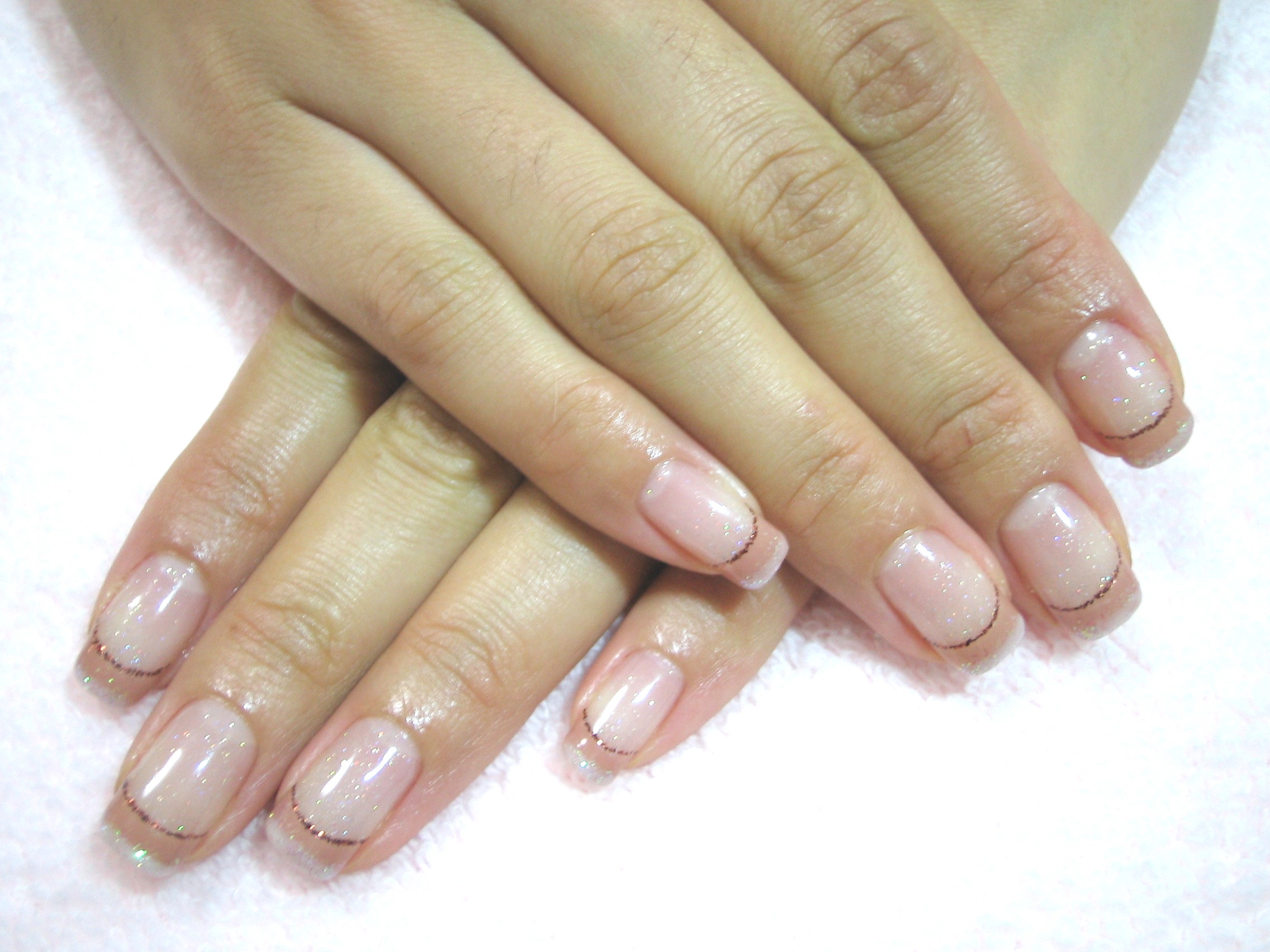 先端のパウダーが意外に存在感があるのでフレンチラインにブラウンでラインを引いてフレンチも際立たせました。