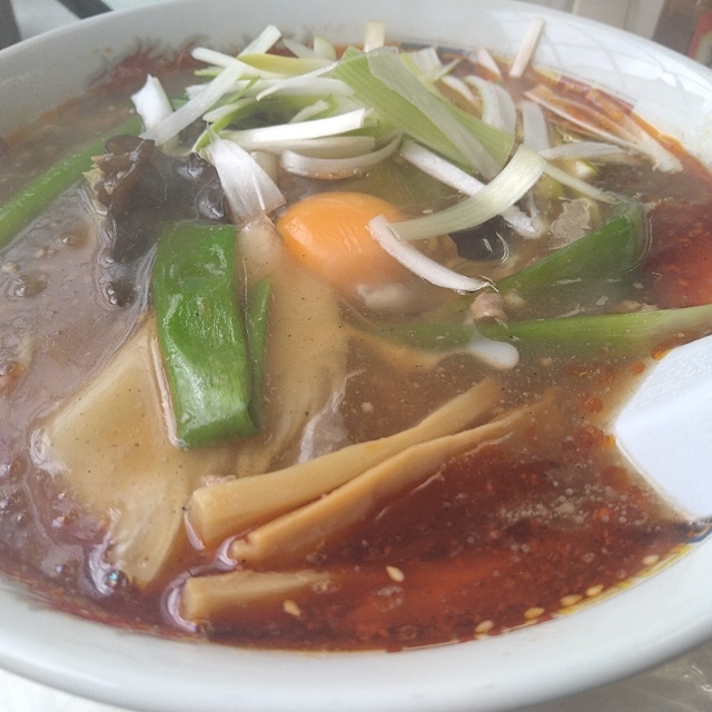 うん、焼きそばのソースが油そばの醤油だれに変わっただけですね。麺は少し太くなったかもしれません。具はネギだけです。麺とネギというのは、日本そばだったら、かけそばと同じです。シンプル・イズ・ザ・ベストにも程があります。良く言えば余分なものを排し、麺の味だけを追求するストロングスタイルとも言えます。