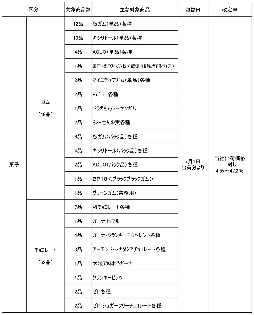 ガム・チョコレート