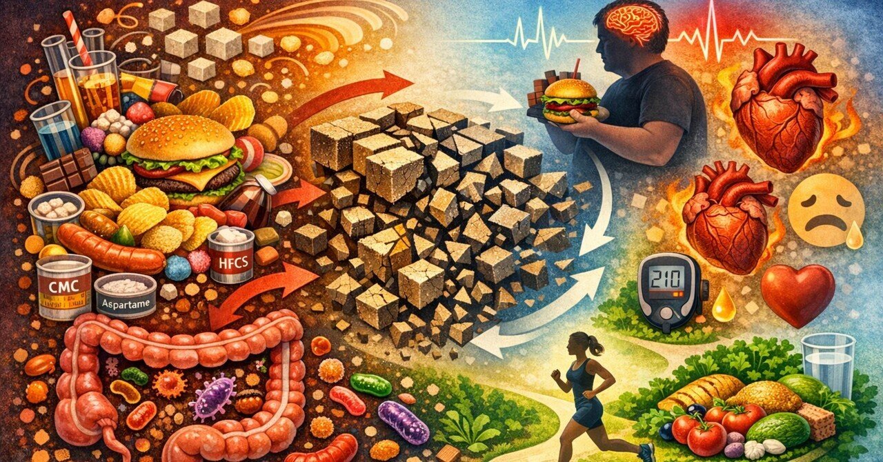 さらに強い味付けや食感設計により過食を誘発し、肥満・糖尿病・心血管疾患・うつ症状などの関連が報告されている。