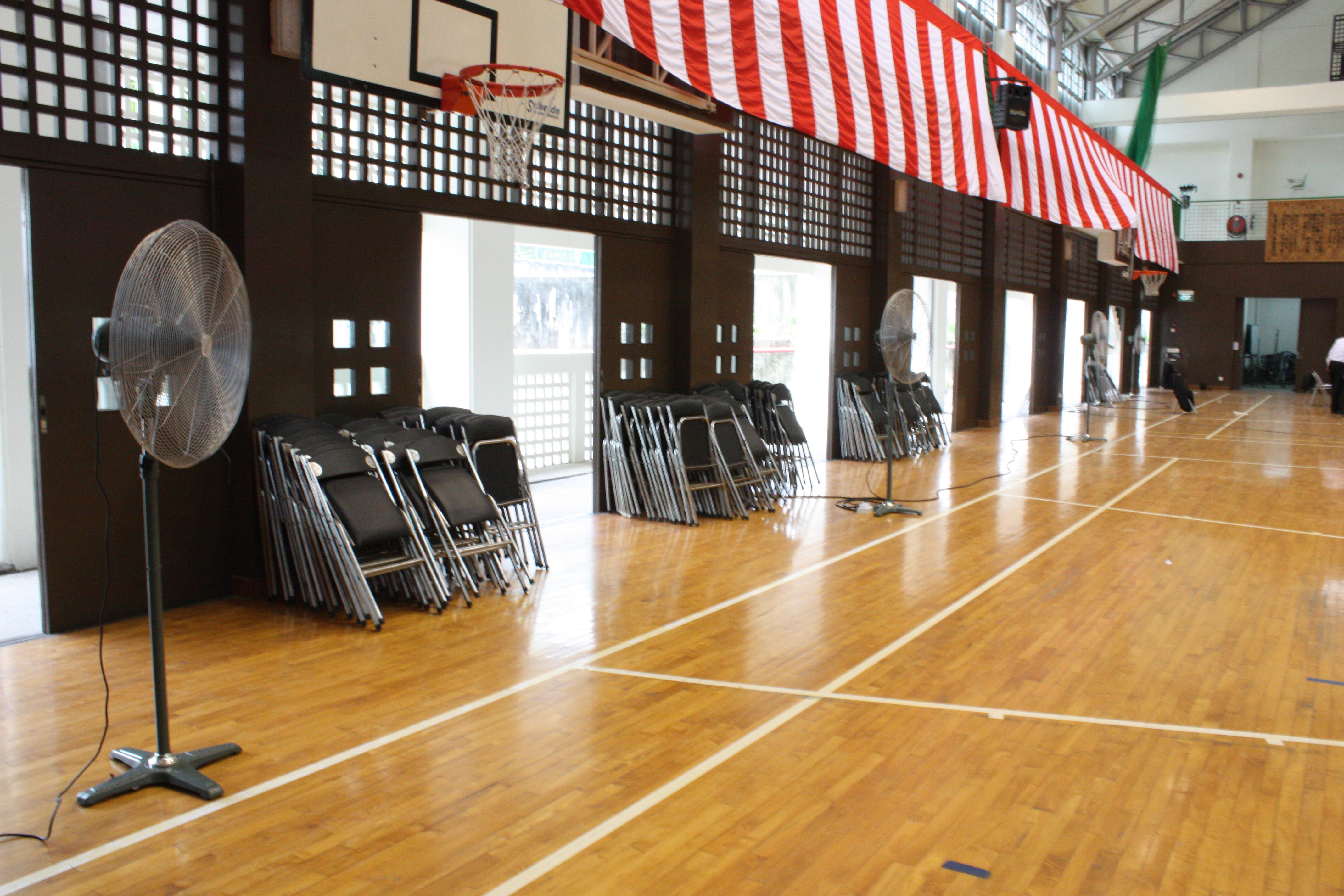 入学式の行われた体育館には扇風機がずらーっと並んでました