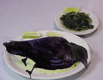 どんな味だと思いますか?カラス肉の色は…羽をていねいにむしりとると、現れた肌は全体がどす黒く、見るからにまずそうだったという。雉子(きじ)や山鳥は内臓も珍重されるが、カラスの場合は内臓は特に臭くて食べられたものではないらしい