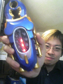 来いっ!!!ガタックゼクターッ!!!!!アンドゥ君から頂いたプレゼントの②個目です☆これはサブ主人公が使う変身アイテムの「ガタックゼクター」です↑↑そう主人公がカブト虫でこれがクワガタ虫です♪このおもちゃ。。。カッコイイ。。。因みにこれでも僕29歳です(爆)これで変身出来るかな??ハイッ!!!子供心はまだ忘れてませんヨ!!!