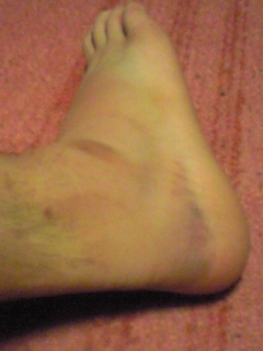 うぉっ!!足が…さっきお風呂に入る為湿布剥がしたら…なんか色が変わってるじゃんっ!!Σ( ̄□ ̄;赤く腫れてるのとは別に下の方に内出血が…昨日は無かったような…さすが酔った勢いでのジャンプッ!!加減を知らずに飛んでるんでその分、着地失敗のダメージも大きかったようです( ̄▽ ̄;)痛みは引いて来たケドこの足大丈夫かな??誰かこのblog見ててお医者って人いたら写真から診察してコメント下さいm(_ _)m心配なんで…(^-^;