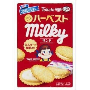 ミルキーの練乳を生地に練り込みまろやかなミルクの風味が広がる♪東ハトハーベストと不二家のミルキーがコラボしたハーベストミルキーサンドです💕