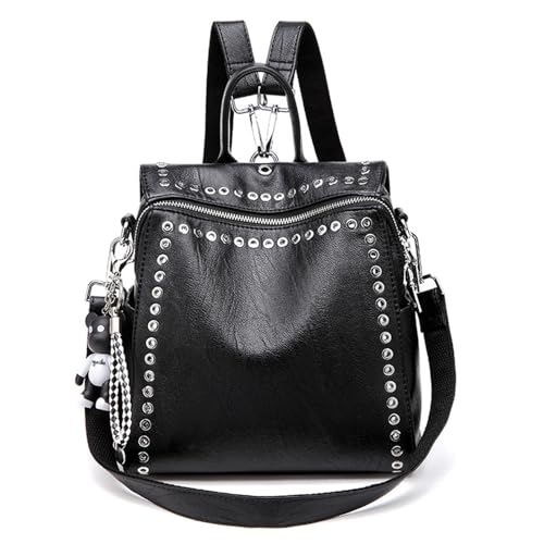 レディースリュック カジュアルショルダーバッグ個性多用途リベットレディース多機能トラベルバッグ 女性の革バックパック (色 : Black, Size : 23x12x24cm) Amazon(アマゾン)