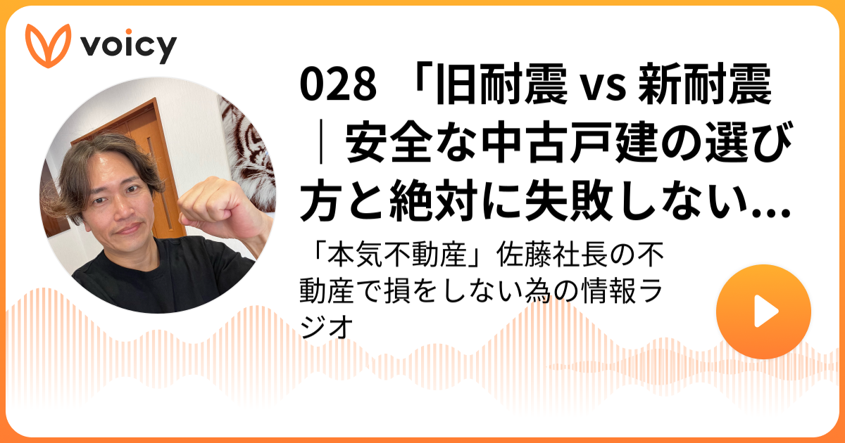 旧耐震と新耐震の違いから地盤・基礎・施工精度まで、安心して中古戸建を選ぶための実務ポイントを本気不動産の佐藤が解説。リフォーム費用の考え方や、築年数では判断できない住宅の本質的な価値を学べるVoicy放送の概要です。