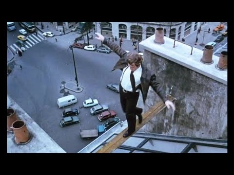 屋根につかまり、またずるずる落ちるのみると「ルパン三世のカリオストロの城」を思い出す。本作のベルモンドはまじで滑ってる感じと重力に逆らってる感じが本当凄い。
