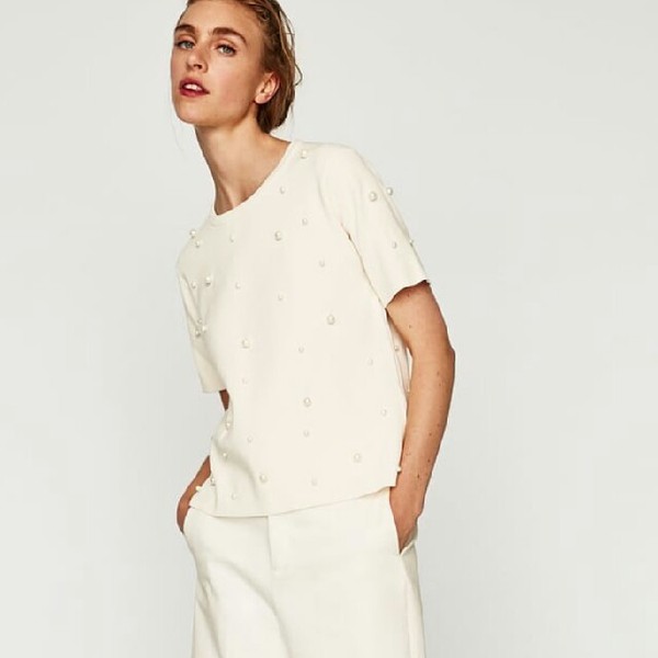 今日着画を撮ったこのお洋服、ZARAのものですが前にも後ろにもパールがびっしり!
