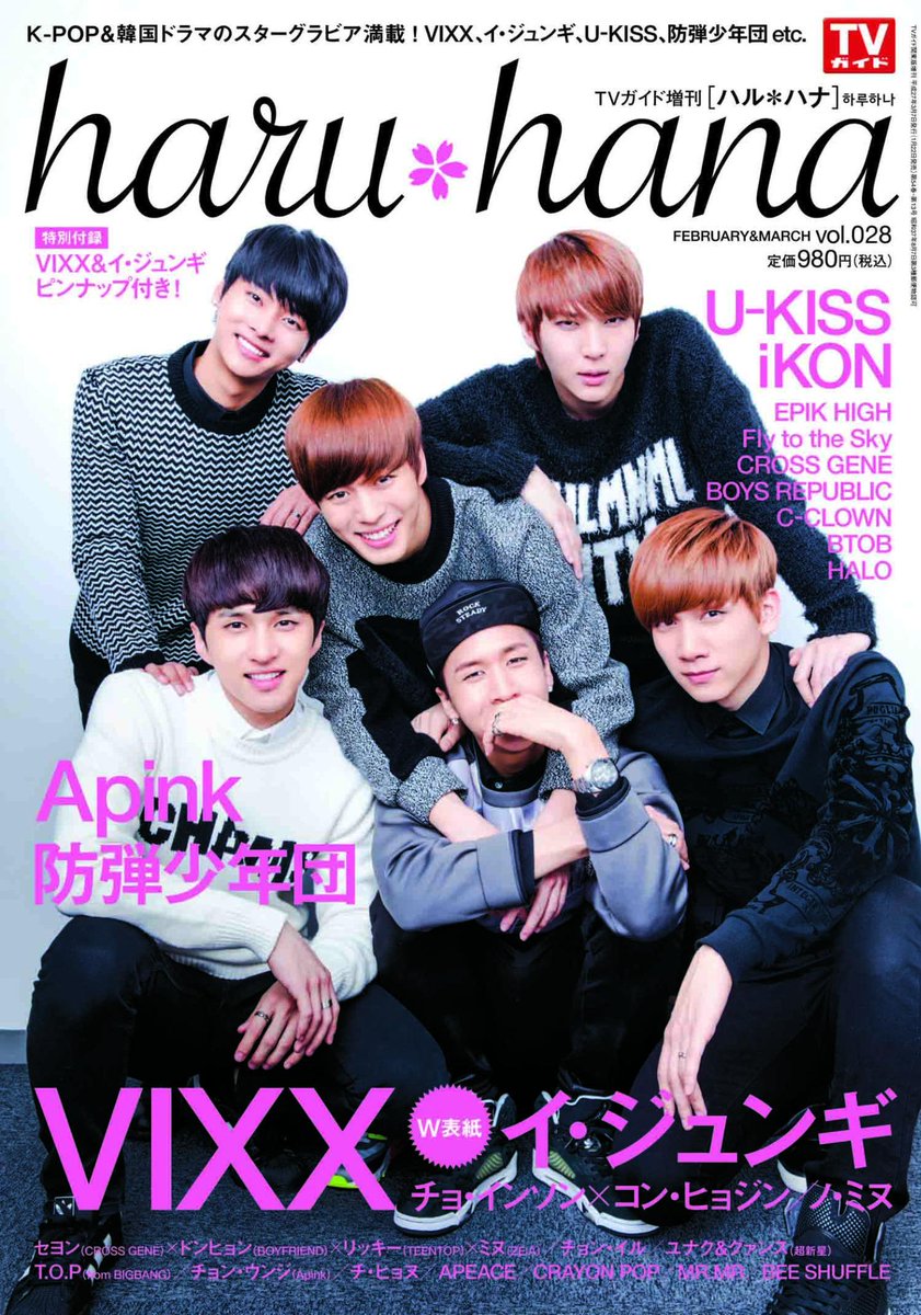 「haru*hana VOL.28」の表紙はVIXX!1月22日発売「haru*hana VOL.28」の表紙はVIXX ! 二者択一Q&Aでメンバーの好みを公開。また、ツイッタ質問に回答&羊のお絵描きも! ピンナップも付いてます♪ WEBストアでのご予約はコチラ (※VIXXの生写真 付き)
