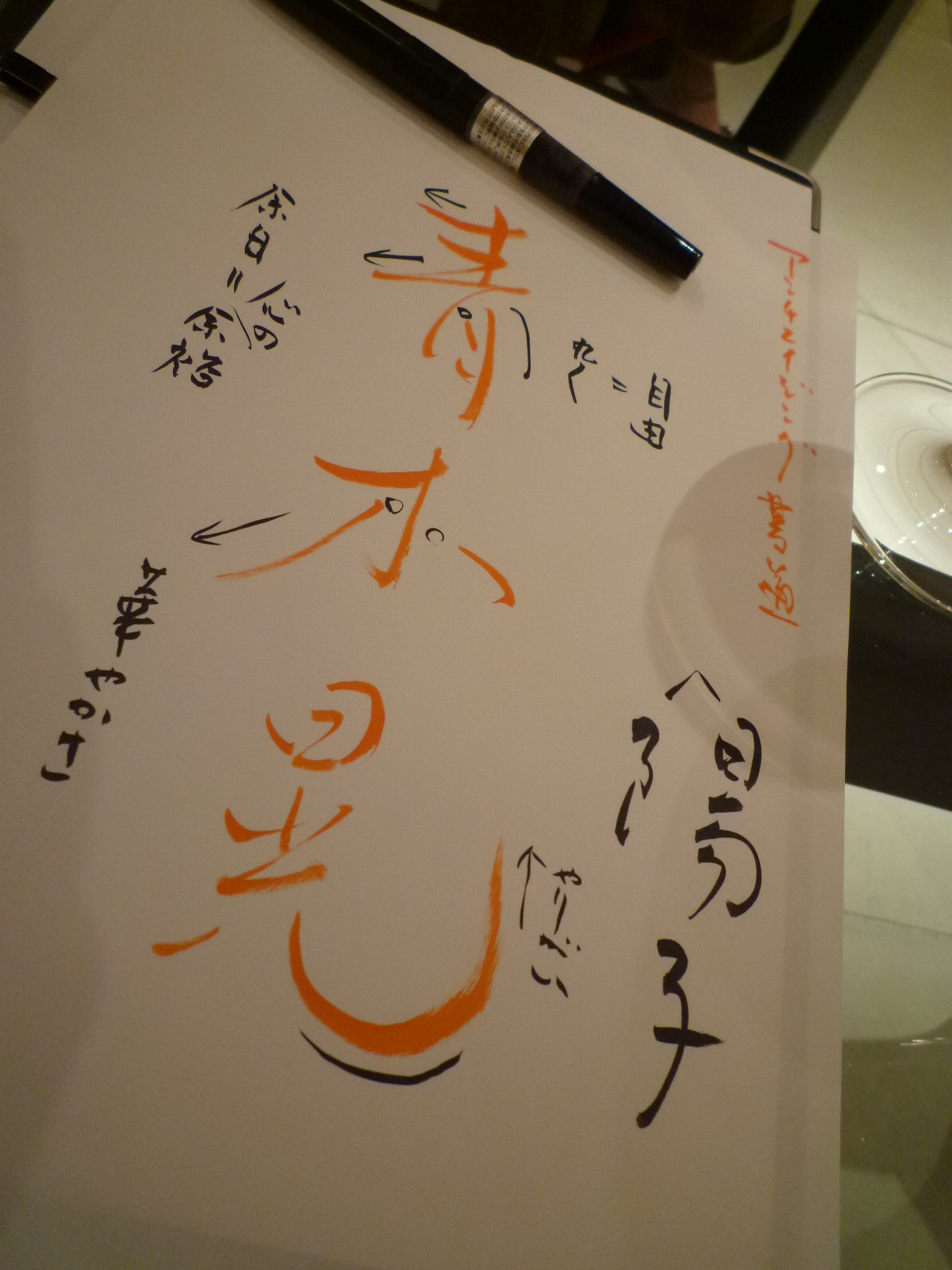 昨日は書道家の秀麗先生によるプライベートレッスンがありました。場所は以前「書道とワインの会」を行った麻布十番のCast78。