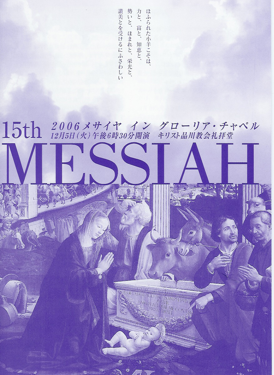 昨日は、キリスト品川教会はグローリア・チャペルで行われたオラトリオMESSIAHの演奏会に行って来ました。オラトリオは宗教的音楽劇であり、その根本は聖書など宗教的歌詞を持つ長大な楽曲です。