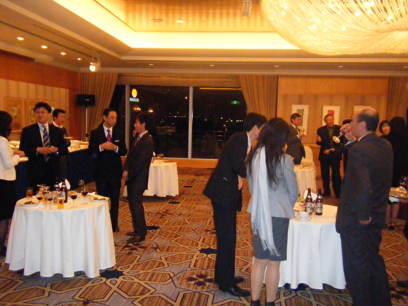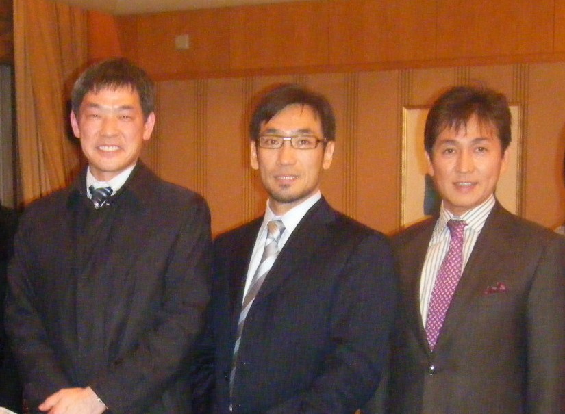 写真左は懇親会風景。写真右は白澤教授、武田先生と。
