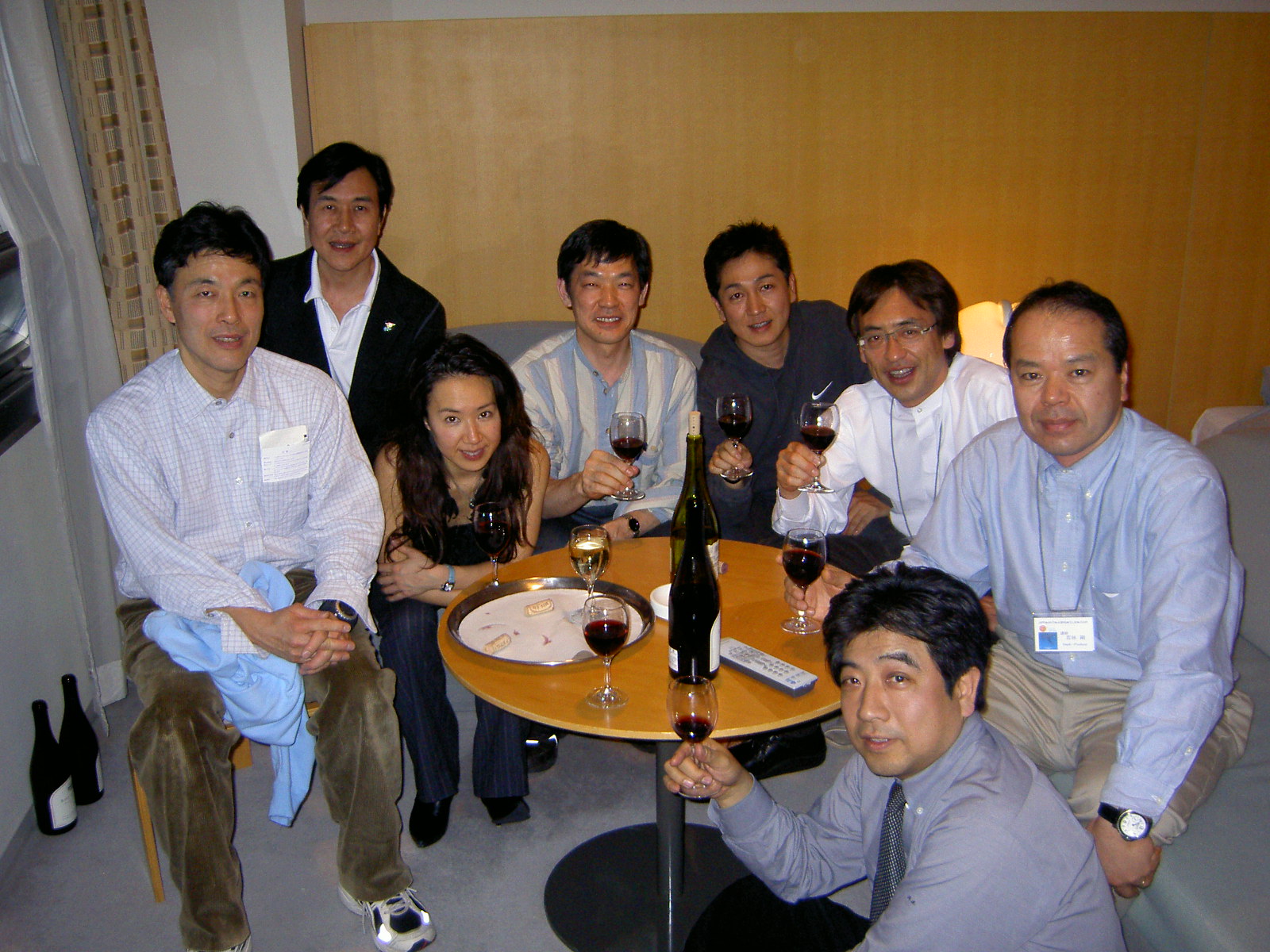 APPI ANTI-AGING CLUB 2006 、最後の夜は坪田先生の部屋で、打ち上げがありました。大のシャンパン好きの坪田先生、この夜のために素晴らしいシャンパン、ワインを持ってきて下さっていて、皆、酸化ストレスがあまりかからない適度な量のアルコールで、アンチエイジング談義に花が咲きました。
