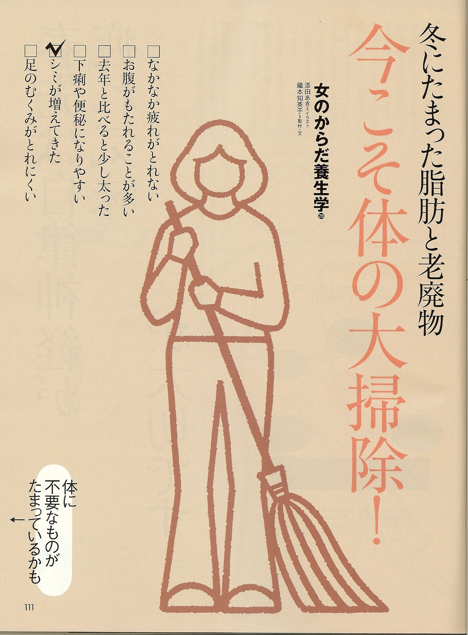 今こそ体の大掃除! 今、店頭で発売中の婦人公論3月22日号。「女のからだ養生学」というコーナーにおいて、デトックスについてのことを述べています。 気温の変動の激しい今日この頃。これだけ、気温差や湿度差、天候が毎日異なると、自律神経系に負担がかかってしまいます。 春先の今こそ、デトックス&リセットを!
