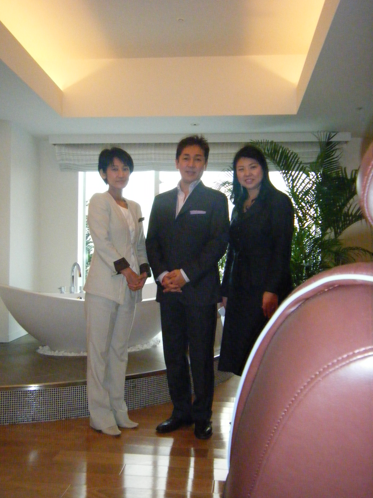 今回のリニューアルで作られたSPAスイートで日下部先生とセラピストの門田さんと一緒に