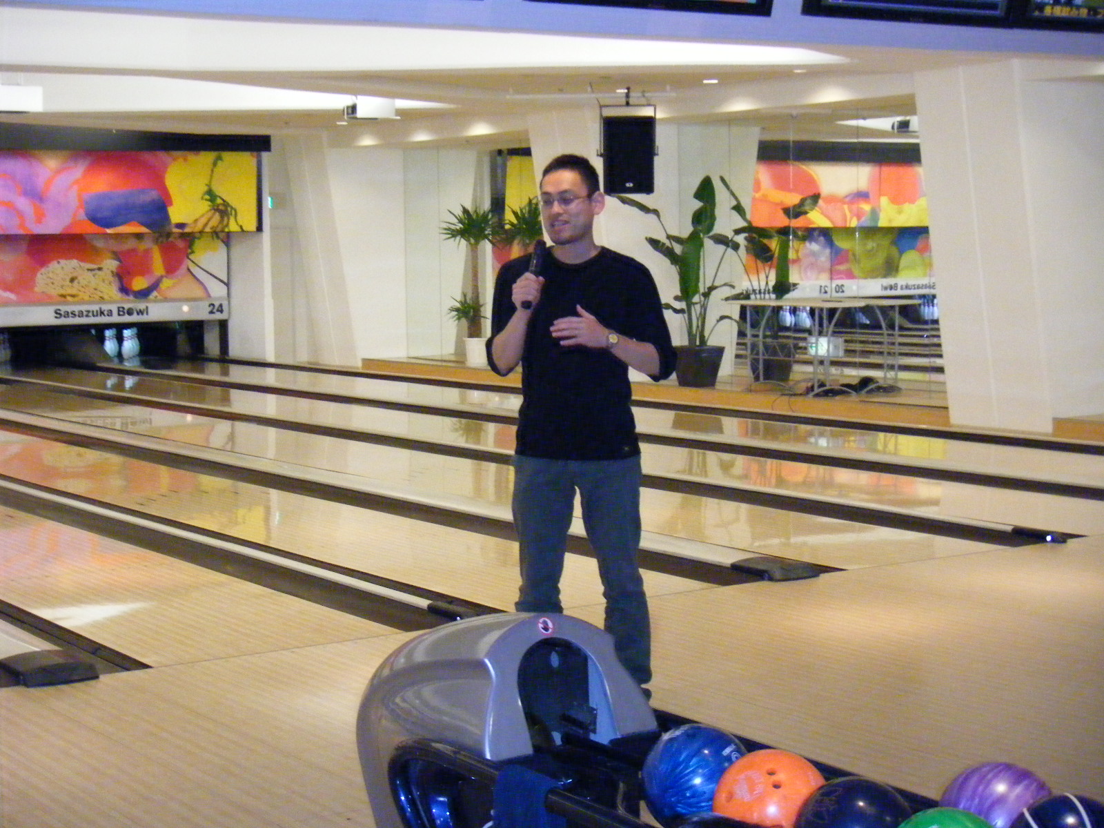 場所は京王線笹塚駅前の笹塚ボウル。ボウリング1ゲームで約50Kcal消費します。計3ゲームを行い、一人あたり150円の寄付を行いました。