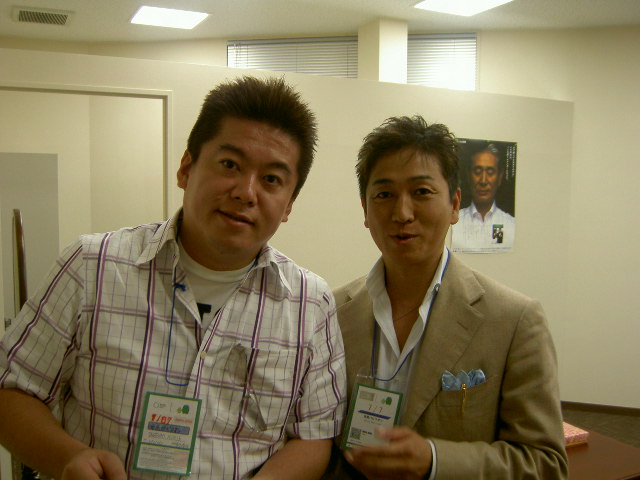 講演後、控え室で堀江社長とツーショット。