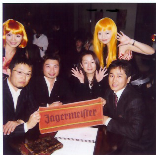 写真は、イエーガーマイスターのコンパニオンガールの前で、「ごきげん」な幹事の面々(堺先生は、なぜかいつも顔が笑っていないんだよな~)。