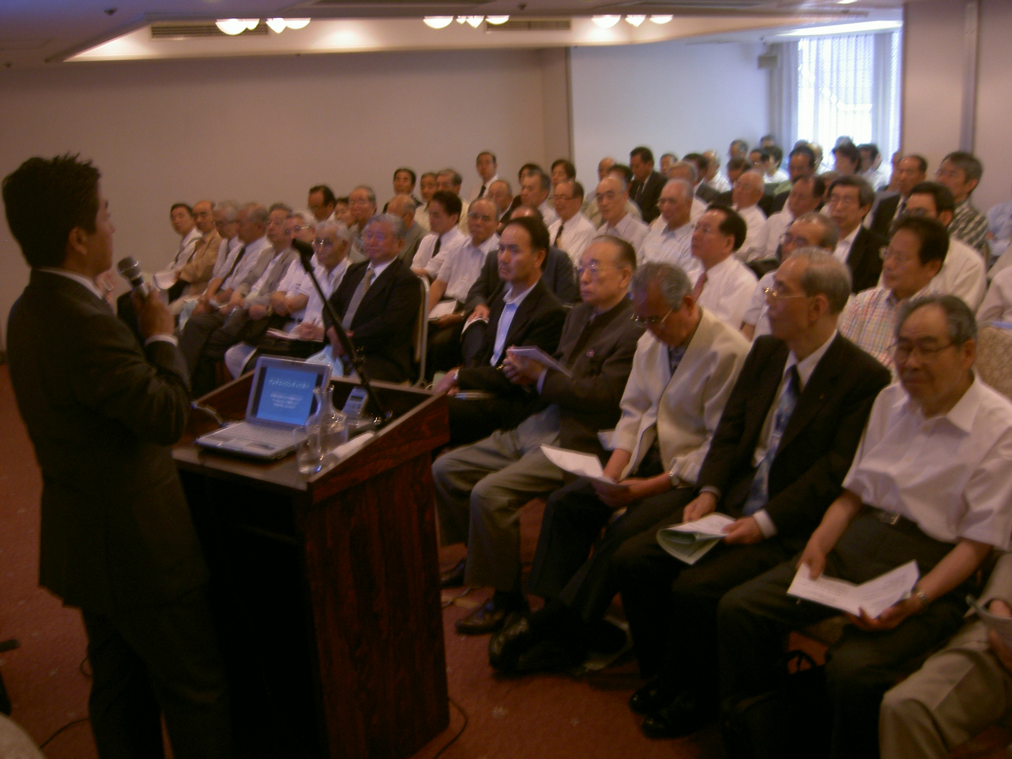 こちらのセミナーは政治・経済、社会、文化、トレンドなど様々な分野から、定期的に行われているとのこと。今日は「アンチエイジングはこうすれば出来る!-医療の現場から、必要な知識と毎日欠かせないこと-」というタイトルで講演しました。毎回ほぼ50名前後の聴講者が集まるらしいのですが、今回は100名を超す申し込みがあったそうです。そのほとんどが、40代~60代の男性!感激です。これまでこのような「アンチエイジング」をテーマにした講演会の対象の主体は40代~50代の女性がほとんどでしたが、ここに来て大分変わってきたことを実感できます。「オトコのアンチエイジング」をずっと言い続けてきた私には嬉しい限りです。