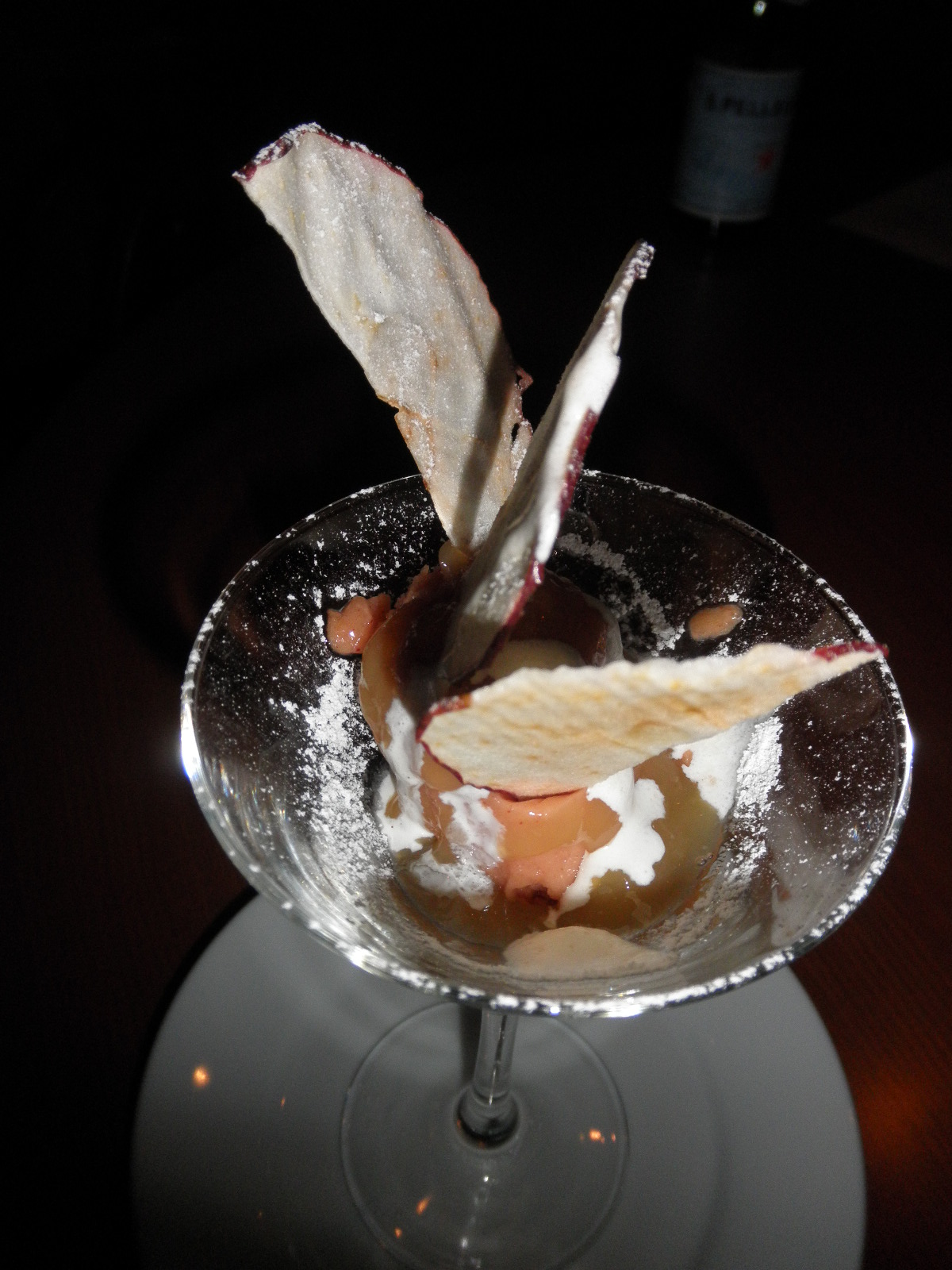 ○数種の調理法の林檎のクープ仕立て~ソルべ ジュレ チップス~