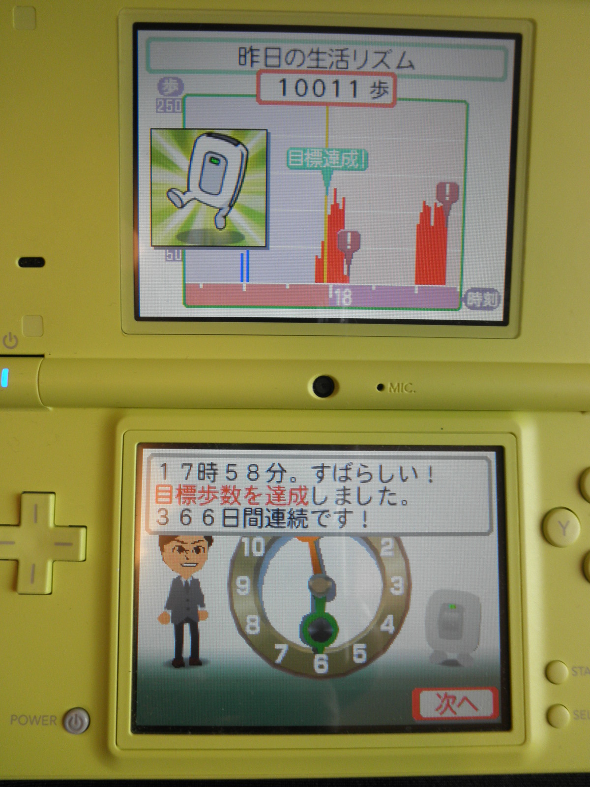 昨年(2009年)の2月17日のブログに書いたニンテンドーDS『歩いてわかる 生活リズムDS』。昨日で、1日1万歩