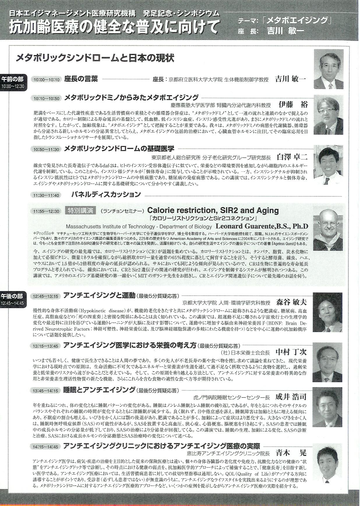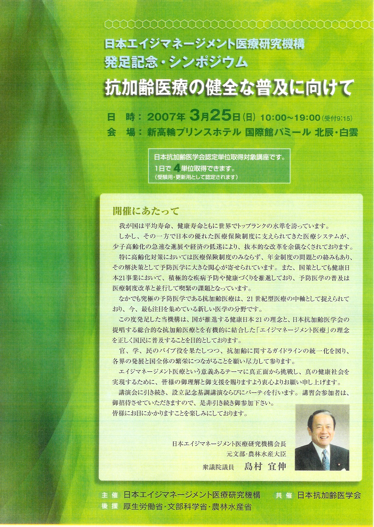 先日、このブログ内でも紹介した「日本エイジマネージメント医療研究機構」の発足記念シンポジウムの詳細が決定しました。